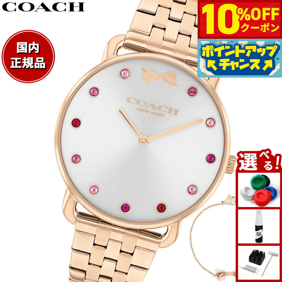 文字盤に施された細かなデザインが、見る角度によって様々な表情を演出します。商品名コーチ COACH 腕時計 レディース エリオット ELLIOT ブレスレット付き ギフトセット 14000127商品番号14000127ブランドコーチ COACHムーブメントクオーツ 日常生活防水(3気圧防水)ブレスレット付き風防素材ミネラルクリスタルケース素材ステンレススティールケースサイズ36×36mmケース厚7.5mmバンド素材ステンレススティールバンド留金タイプ3つ折れ文字盤カラーシルバーホワイト本体重量81g保証期間メーカー2年間保証付属ブレスレット付き / 取扱説明書 / 保証書 / 専用BOXその他のサービスサイズ調整対応可能 / ギフトラッピング対応可能 ※別途ご注文くださいコーチ COACH 腕時計 レディース エリオット ELLIOT ブレスレット付き ギフトセット 14000127文字盤に施された細かなデザインが、見る角度によって様々な表情を演出します。