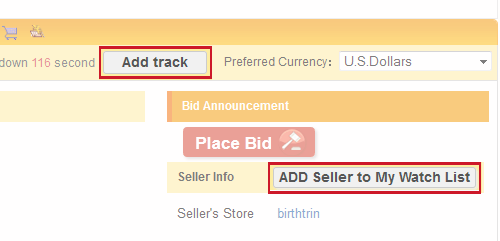 Track My Favorite SellersWhen you find a store you are interested in and you particularly like the Seller, click the "Add Seller to My Category" button at the right side of the item page. You will be able to view all the seller's items when you next sign up under your 'My Category' list.