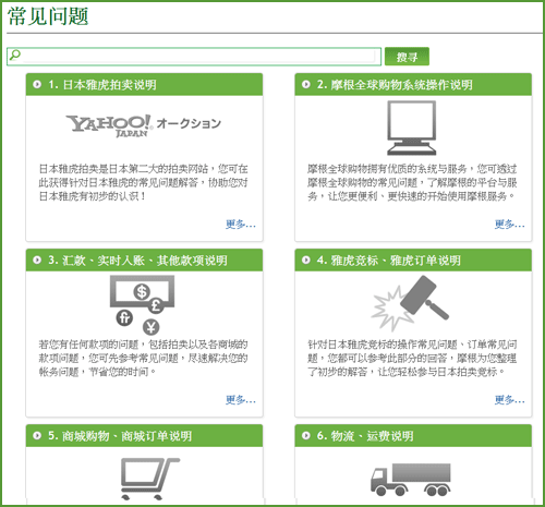 当您对购物有任何问题时,摩根全球购物建议您可参考「常见问题」,摩根为您汇整了过去到现在所有的会员问题,包括竞标、购物、汇款、物流、退款等各类型问题,您可透过「常见问题」快速获得答复。
