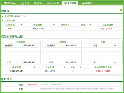 若您需要查询您的账户余额,请依照以下步骤操作「管理中心>帐户信息>对帐表」,进入「对帐表」后,您可看到您的余额、交易金额总和、帐户结论等信息。您也可透过「管理中心」首页右上方的「余额信息」快速获得信息。