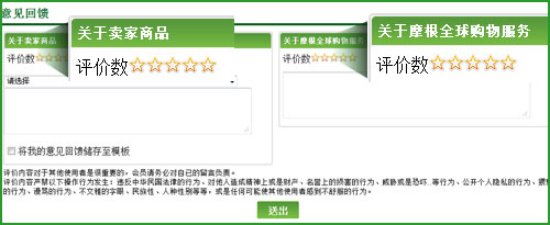 当您需要针对订单进行回馈时,您可在订单状态为「国内已发货」时,七天内,依照以下步骤进行操作「管理中心>订单信息>订单列表」,点击您要意见回馈的订单编号,进入订单后,您可看到「意见回馈」处,您可针对卖家或摩根进行评价。