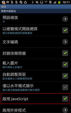 因特网→设定→启用JavaScript→开启