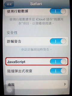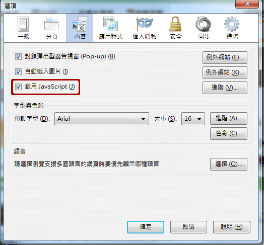 工具→功能设定→进阶→内容→启动JavaScript→确认