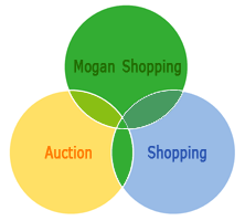 MOGANSHOPPING的LOGO組合,傳達服務內容,提供拍賣與購物的服務,也傳達了摩根全球購物的網址「www.moganshopping.com」,讓會員更容易記憶,更容易辨識。