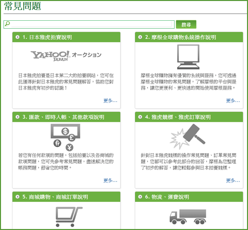 當您對購物有任何問題時,摩根全球購物建議您可參考「常見問題」,摩根為您彙整了過去到現在所有的會員問題,包括競標、購物、匯款、物流、退款等各類型問題,您可透過「常見問題」快速獲得答覆。