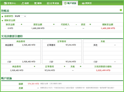 若您需要查詢您的帳戶餘額,請依照以下步驟操作「會員中心>帳戶資訊>對帳表」,進入「對帳表」後,您可看到您的餘額、交易金額總和、帳戶結論等資訊。您也可透過「會員中心」首頁右上方的「餘額資訊」快速獲得資訊。