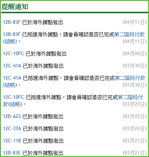 最新的十筆處理進度,將會呈現在「會員中心」左下角的「提醒通知」,您可快速得知訂單的處理進度。