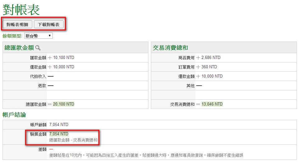 3)對帳表明細: 支援多國幣別,款項進出項目更清楚 ** 操作:會員中心>帳戶資訊>對帳表>對帳表明細