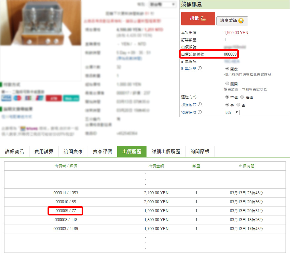 因應的措施已經完成,未來競標中案件下標帳號下方,將會同步顯示該帳號是第幾位下標者